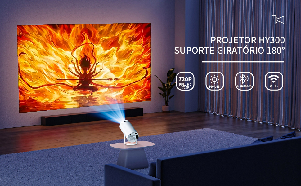Imagine: * Uma noite de filmes sob as estrelas no jardim, ou maratonas de série no conforme do sofá.* O HY300, compacto como um livro (19x9x9cm), liberta você das limitações de telas tradicionais.